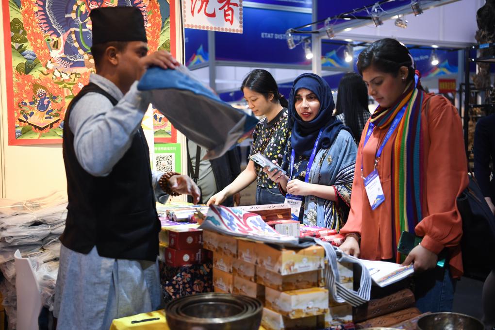 5月24日,观众在第二十届中国(深圳)国际文化产业博览交易会尼泊尔展台选购。