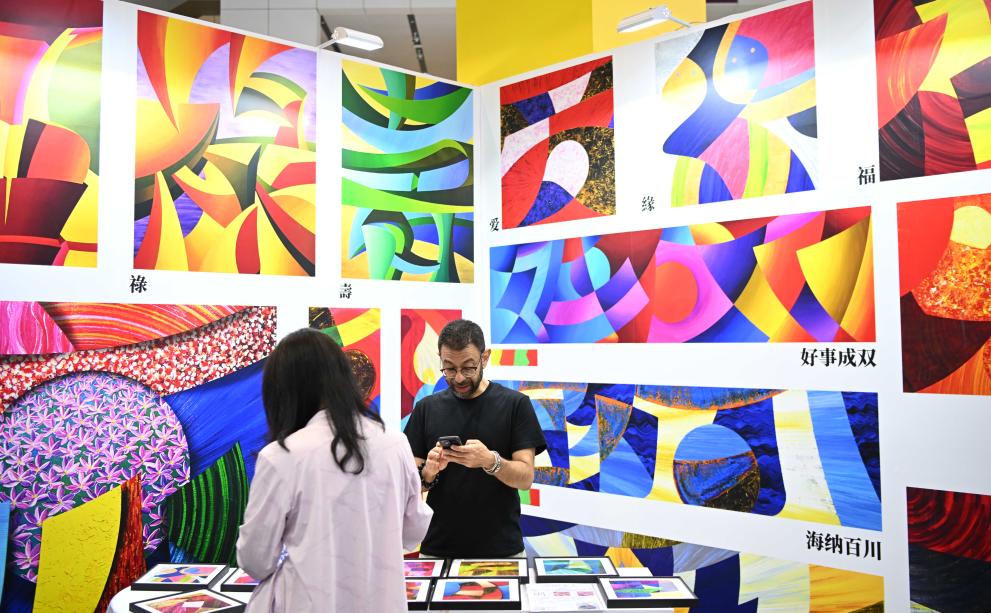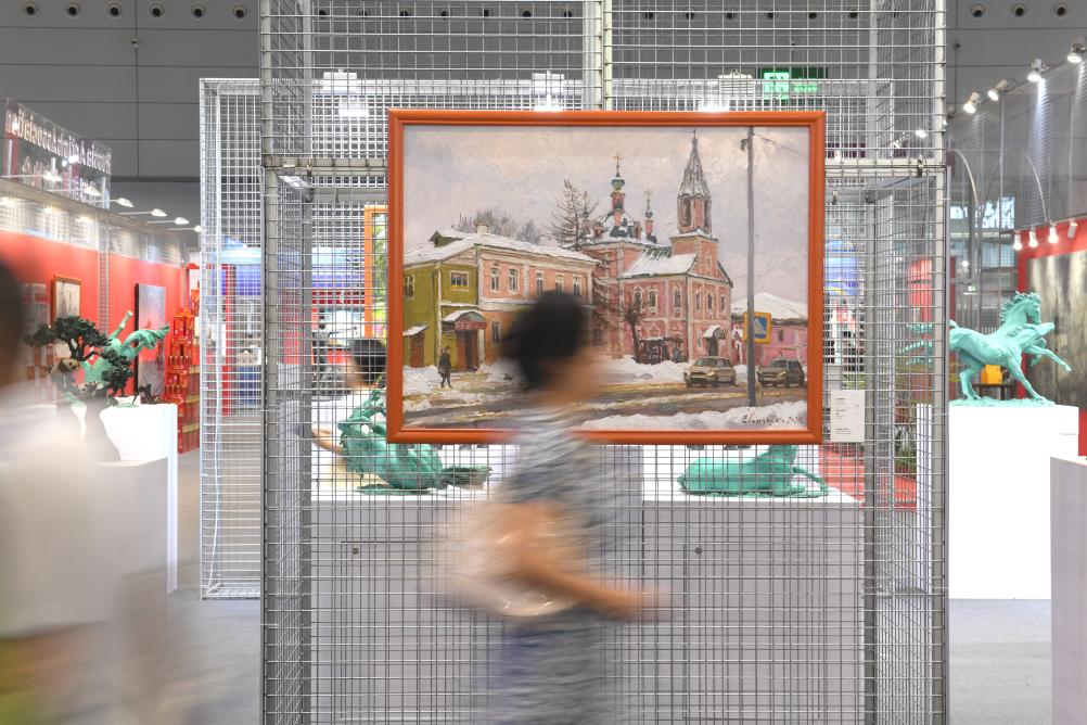 5月24日,在第二十届中国(深圳)国际文化产业博览交易会上,观众从俄罗斯艺术家的画作前走过。
