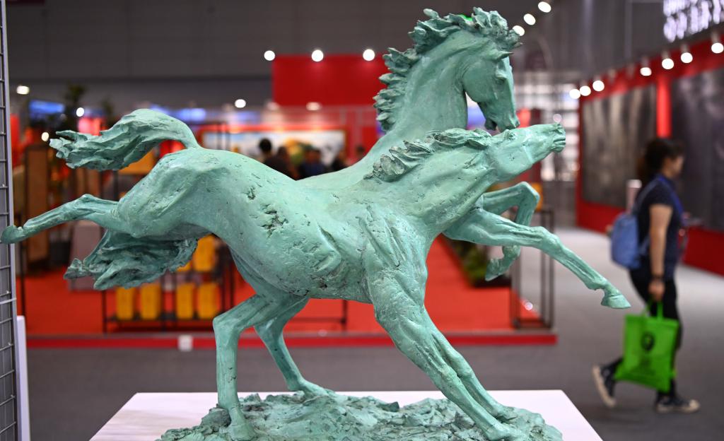 5月24日在第二十届中国(深圳)国际文化产业博览交易会俄罗斯美术协会展台拍摄的马雕塑作品。